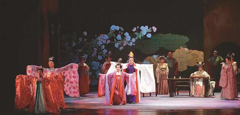 《光華之君》由唐美雲(中後)飾演經典人物光源氏(光華君),2020年首演好評不斷,並榮獲2021傳藝金曲獎「最佳團體演出」、「最佳導演」與「最佳編劇」三項大獎。圖/兩廳院提供