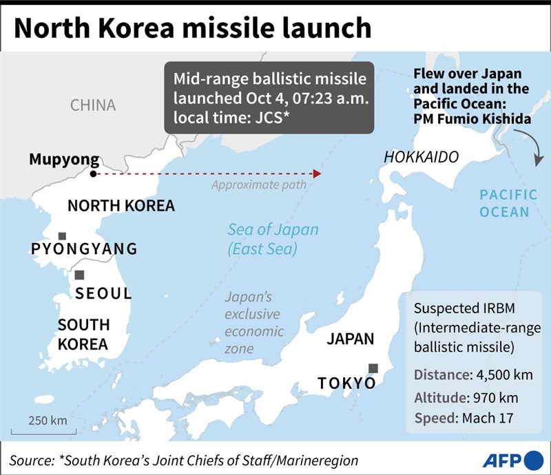 北韓導彈飛越日本 射程4600公里 展牽制美軍意圖 |2022.10.04 語音朗讀 1054觀看次 字級 大 中 小 北韓4日試射距離4600公里、高度也達1000公里的飛彈,射程飛越日本、涵蓋關島,被認為也有牽制美軍的意圖。圖/法新社 【本報綜合外電報導】日本防衛大臣濱田靖一今(4)日說,推估北韓稍早試射的彈道飛彈飛行距離約4600公里,可能是北韓至今所試射飛彈中,射程最遠的一枚,且可能跟「火星-12型」中程彈道飛彈同型。中程彈道飛彈同型 射程涵蓋關島日本富士電視台解說委員能勢伸之分析,火星-12型是北韓具代表性的中程彈道飛彈(IRBM),在此之前試射飛行距離為3000公里,今天試射距離4600公里、高度也達1000公里,「逐漸展現出火星-12型本來的能力」。今天試射飛行距離已接近最大射程,由於射程範圍涵蓋關島,被認為也有牽制美軍的意圖。圖/法新社日府國安會議 研議因應日本經濟新聞、富士新聞網、日本放送協會(NHK)報導,日本政府為因應北韓試射,今天上午8時45分起在首相官邸召開約10分鐘的國家安全保障會議(NSC),首相岸田文雄、內閣官房長官松野博一、濱田靖一及外務大臣林芳正等人,一同聽取業管單位對今天試射的情報說明,並商議如何應對。防衛省表示,北韓今天試射的彈道飛彈在上午7時28分左右到7時29分左右間,飛越日本青森縣上空,研判掉落在日本東方約3200公里外的海域。這是北韓繼2017年9月15日以來,時隔5年再度試射飛越日本上空的彈道飛彈。日本政府推估北韓今天試射的這枚彈道飛彈,以最高高度約1000公里、飛行距離達至今最遠的4600公里。圖/美聯社濱田在防衛省受訪時表示,北韓今天試射的彈道飛彈,可能跟過去曾試射過4次的火星-12型同型。濱田說,今天試射的彈道飛彈射程可能超過中程彈道飛彈,推估飛行距離約4600公里,是北韓至今所試射飛彈中,射程最遠的一枚。松野在國家安全保障會議結束後主持記者會時說,這枚彈道飛彈飛越青森縣附近上空,在上午7時44分左右掉落在日本專屬經濟區(EEZ)外的太平洋海域。目前推估這枚彈道飛彈飛行距離約4600公里、最高高度達1000公里。日嚴重抗議 強烈譴責北韓日本政府正就飛彈種類進行分析,至於北韓試射意圖,松野表示無法肯定回答,但表示已立即透過駐北京大使館管道,向北韓提出嚴重抗議,「以最強烈表現方式予以譴責」。防衛省表示,今年截至目前為止,北韓已試射20次、至少36枚彈道飛彈,高於2019年試射的25枚,已創歷年來單年試射枚數新高。受到彈道飛彈試射影響,日本東北新幹線的新青森站到盛岡站間,及北海道新幹線的新函館北斗站到新青森站間雙向列車,一度暫時停駛。圖/法新社 前一篇文章 俄羅斯測試末日武器 專家:普亭警告西方 下一篇文章 川普控告CNN誹謗 求償152億元 熱門新聞 01佛光會參與COP30 推廣環保與心保2025.11.1302法華禪寺皈依典禮 佛子開啟修行旅程2025.11.1303新馬寺大專佛學生活營 學習生活中覺有情2025.11.1304璀璨燈光 映照千年運河2025.11.1305球星陳傑憲出書 盼助人跨過低潮2025.11.1306【相守一輩子】 學習向另一半求助2025.11.1307習近平會西班牙國王 盼成戰略夥伴2025.11.1308土耳其運輸機墜毀 20軍人罹難2025.11.1309健力世錦賽 中華隊再奪3金2025.11.1310【觀我望己】追日,散策旅程 (下)2025.11.13 訂閱電子報 台北市 天氣預報 台灣一週天氣預報 相關報導 中德財金對話聚焦稀土 達27項共識墨西哥Z世代 上街抗貪腐中日緊張 陸4海警船巡航釣魚台空靈線條 示警汙染印尼村落慶典 噴火表演吸睛警告日本 陸黃海軍演、籲暫勿遊日