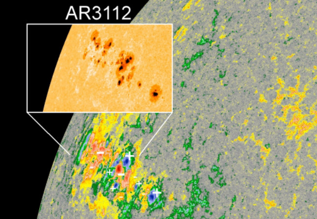 天文館表示,太陽上出現近年來最大的黑子群AR3112,範圍超過13萬公里,大約是地球直徑的十倍大。隨著這個不穩定的大黑子群逐漸轉朝向地球,科學家預測未來很有可能會爆發能量相當於十億顆氫彈的X級閃焰,除了給地球帶來絢爛的極光外,也可能對通訊、電力網路等造成影響。