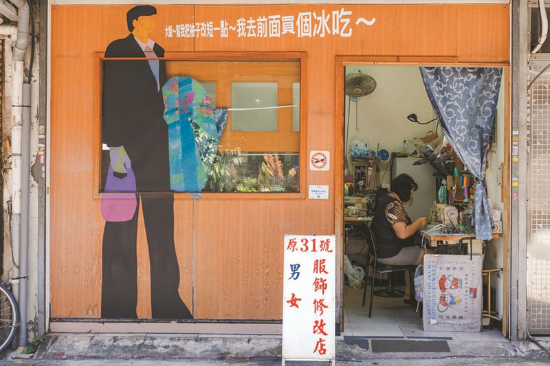 藝術家周學涵〈履寶磚:士林系列〉,以有百年歷史的許聚茂中藥房為載體,將採集的士林圖像、物質與故事轉換為一片一片的馬賽克磚,為藥房換上新裝,也讓大家閱讀巷弄生活堆疊的痕跡。