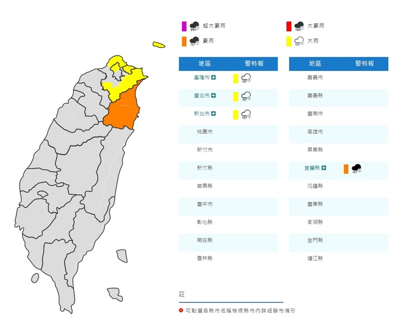 東北季風來了 宜蘭豪雨特報 北北基慎防大雨 |2022.10.06 語音朗讀 607觀看次 字級 大 中 小 東北季風影響及對流發展旺盛、易有短延時強降雨,中央氣象局發布豪雨特報。圖╱資料照片 【本報台北訊】中央氣象局發布豪雨特報,東北風影響及對流發展旺盛,易有短延時強降雨,今天宜蘭縣地區有局部大雨或豪雨發生的機率,大台北山區及基隆北海岸有局部大雨,注意坍方、落石及溪水暴漲。氣象局說,今、明兩天東北季風影響,桃園以北及東北部天氣稍涼;東北部、東部及大台北地區有雨,並有局部較大雨勢,桃園、東南部地區及馬祖有局部短暫雨,其他地區及澎湖、金門為多雲,午後南部地區及其他山區有局部短暫陣雨。圖╱取自氣象局官網氣溫方面,氣象局指出,桃園以北及宜蘭、花蓮天氣稍涼,高溫約攝氏26-29℃,其他地方仍偏熱,高溫在31-33℃,至於各地低溫約24、25℃。氣象局說,東北季風影響,今、明兩天嘉義以北、東南部(含綠島、蘭嶼)、恆春半島沿海空曠地區及澎湖、金門、馬祖易有8至9級強陣風。圖╱取自氣象局官網 前一篇文章 台灣獼猴禁養令生效 未依規定辦理將受罰 下一篇文章 屏東縣民公園形象廣告獲德國紅點、美國高峰創意獎 熱門新聞 01【遨遊藝事】巴黎 黛瑪兄弟茶館(Dammann Frères)2026.02.0602兩岸新聞營師生 認識人間佛教2026.02.0503佛教藝文本土化 昆士蘭美術館團隊訪中天寺2026.02.0504印尼佛教學院開學 培育國際弘法僧才2026.02.0505社區學童岡山講堂行春 學三好迎接午馬年2026.02.0506向前有路 光明在望2026.02.0507動物的精采瞬間(上)2026.02.080810年前震倒115死 台南維冠改建防震7級大樓2026.02.0609美擊落伊朗無人機 緊張局勢升高2026.02.0510長頸族2026.02.05 訂閱電子報 台北市 天氣預報 台灣一週天氣預報 相關報導 枋寮.慢活春節加成獎勵 北市診所除夕開診5成太平山遊樂區 銀色童話世界太平山飄冰霰 周三仍有低溫卓揆:宜蘭鐵路高架化 春節前核定美濃花海迎春 番茄公仔吸睛