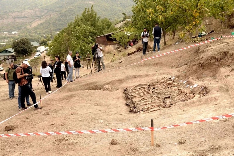 亞塞拜然表示在納戈爾諾.卡拉巴赫地區發現一處亂葬崗,並稱所埋的是1990年代納卡戰爭期間被亞美尼亞分離派勢力處決的亞塞拜然軍人。 圖/法新社