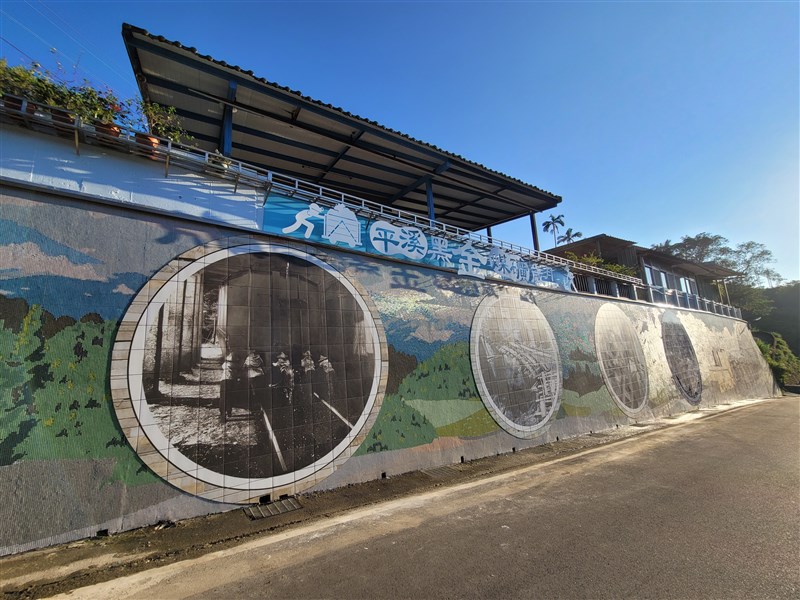 新北市政府民政局長柯慶忠表示,黑金煤礦過去是台灣經濟基石,平溪區曾是北台灣煤礦重工業城,鼎盛時期有高達21座礦場,年產量可達40萬公噸。本次設計融入早期平溪挖礦情境牆面,並以噴墨窯燒6張歷史黑白巨幅相片,訴說過往黑金歲月故事。