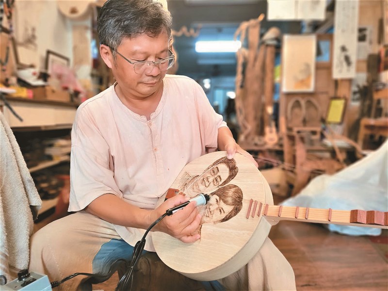 「我的音樂細胞不如民謠傳唱師,就用藝術專長為恆春民謠推廣盡分心力!」王明堂說,自己從小聽恆春民謠長大,老輩彈唱訴說心情和故事,縣府十年前在恆春民謠季舉辦千人傳唱,他請傳藝師吳登榮接下月琴製作任務,他則想到素面的月琴太單調,發想將人像和詩詞書法燒烙其上,成為獨一無二的作品。