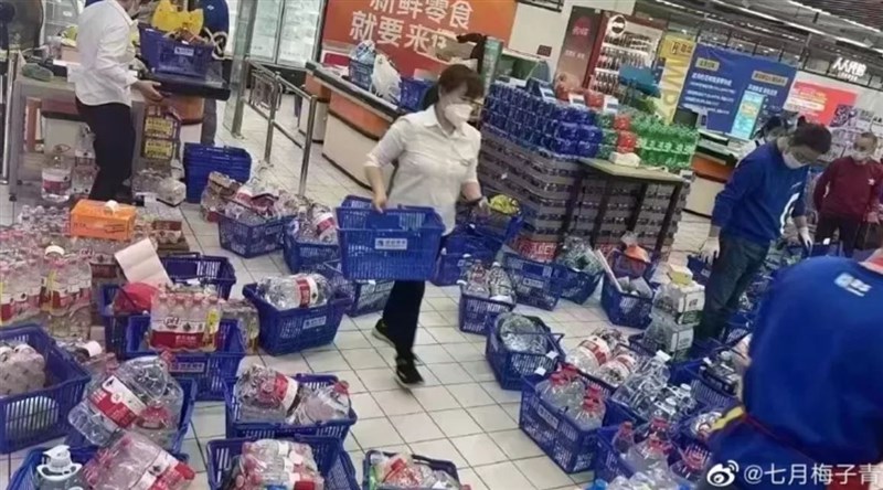 「你今天囤水了嗎」,社交平台微博今天一早就跳出問候句,即時粗糙調查上海人搶囤水情況。上海市囤水潮從11日開始蔓延,由於生鮮平台搶不到水,有人索性前往賣場搬水回家,社群瘋傳家中囤水、賣場搬水畫面。