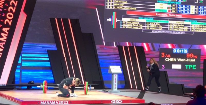【記者張哲郢綜合報導】亞洲舉重錦標賽12日出現令人心痛畫面,去年東京奧運拿到銅牌的舉重好手陳玟卉,她在女子71公斤抓舉亮相時,第一次試舉失敗後疑似傷到右手肘,她雖忍痛再度挑戰仍失敗,結果失格收場,未能留下成績。