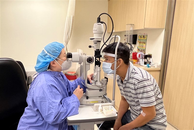 亞東醫院眼科部麥令琴醫師,為阮先生進行檢查。圖/亞東醫院提供