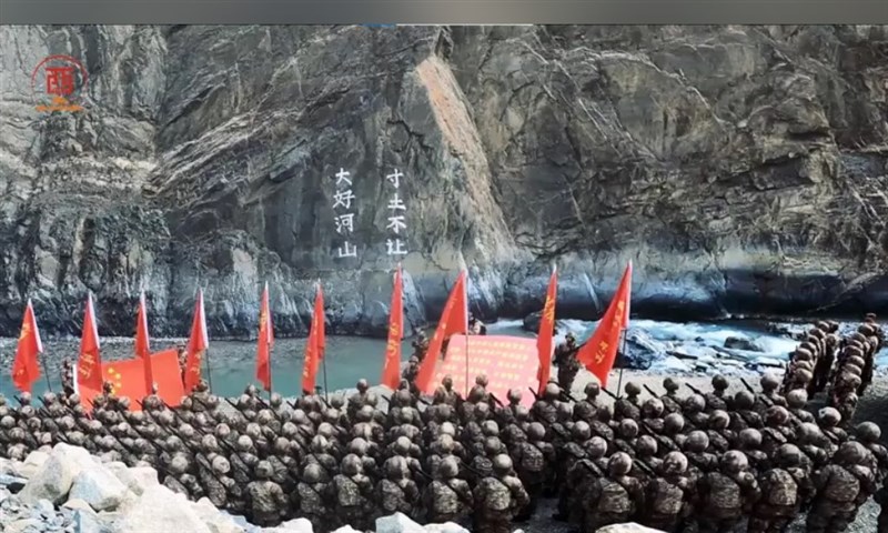 大陸外交部宣布中印邊界磋商機制會議舉行,「提出建設性建議」。圖為2021年9月新疆軍區某團官兵前往2020年雙方戰鬥處悼念。圖/截自「西部戰區」微信公眾號