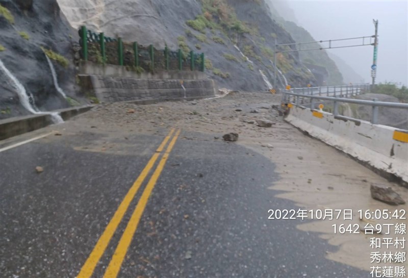 今天雨勢逐漸增強,恐有致災風險,蘇花路廊不排除實施預警性道路封閉。圖為蘇花路廊台9丁線日前因大雨釀土石流就曾一度中斷。圖/公路總局提供