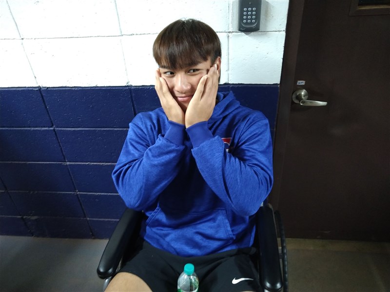 羅暐捷對德國一戰傷到左膝,對日本賽前還只能坐在輪椅上。圖/記者張哲郢