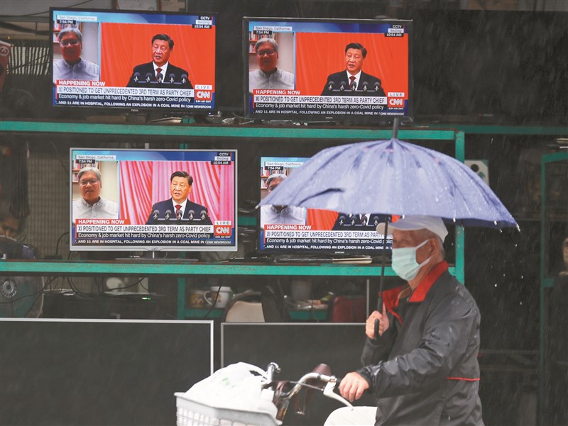 中國共產黨第二十次全國代表大會昨天在北京人民大會堂開幕,外國媒體CNN直播報導,分析兩岸問題對於美中關係的影響。圖╱余承翰