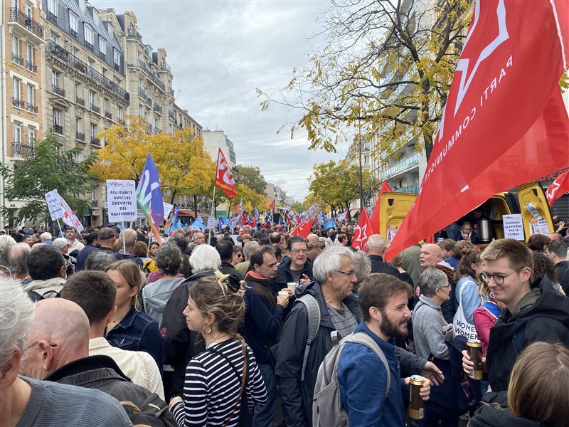 巴黎街頭湧萬人 抗議勞工貧困、環保無作為 |2022.10.17 語音朗讀 907觀看次 字級 大 中 小 左翼新民眾生態和社會聯盟(NUPES),16日發起「抗議昂貴生活與氣候無作為遊行」,警方估計約3萬人。圖/中央社 【本報綜合外電報導】巴黎昨(16日)至少3萬人走上街頭,要求政府改善勞工薪資與工作條件,更積極推動環保。正值煉油廠員工罷工之際,18日將發動全國聯合大罷工,法國社會不滿逐漸醞釀,有山雨欲來之勢。極左派不屈法國(LFI)領袖梅蘭雄(Jean-Luc Mélenchon)號召左翼「新民眾生態和社會聯盟」(NUPES),於16日發起「抗議昂貴生活與氣候無作為遊行」,數個環保團體與部分工會響應動員。示威主要訴求包括凍漲能源與民生必需品價格、下修法定退休年齡至60歲、降低公共運輸價格、調漲最低薪資、青年最低收入保障、超大企業增稅、環保發展投資等。法國巴黎16日的遊行緩慢前進,隊伍中有樂隊、舞蹈表演以熱鬧方式傳達訴求,沒有警察局最初擔憂的黑塊暴力人士。圖/中央社法國石油巨擘道達爾能源集團(TotalEnergies)煉油廠員工為爭取調薪已罷工數周,造成煉油廠和儲油庫停擺,全法國面臨燃料短缺。帶頭發起罷工的強硬左派法國總工會(CGT)不滿道達爾15日提出的協議,矢言持續罷工。不過,幾個工會並未動員參與遊行,包括最大的法國總工會,秘書長馬蒂內茲(Philippe Martinez)說,各大工會將於18日發動跨產業聯合大罷工,受影響範圍包括全國交通運輸與公務員,而「薪水調漲」與「抗議物價上漲」訴求不太相同。根據主辦單位,示威人數達14萬人,警方則表示為3萬人,但根據法新社在內的新聞媒體委託獨立計算業者Occurrence估計,參與人數為2萬9500人。人在現場的梅蘭雄表示活動「大成功」。參與遊行的不屈法國地區成員瓦萊麗.法蘭索瓦(Valérie François)表示,「薪資調升」是主軸。她說:「薪資需要能養活自己、購買力需要改善,人民才能擺脫『窮忙族』。」她舉例,1980、90年代的教師薪水是當時最低薪資的兩倍,如今卻只比最低薪資略高。「儘管法國的通貨膨脹比較溫和,但於此同時,所有人都受到衝擊,且絕對有勞工貧窮化的趨勢,這是完全無法接受的。」在生態方面,法蘭索瓦說,烏克蘭戰爭只是開始,「馬上來到的氣候危機將會帶來生態、社會、糧食和水源危機,我們也無法控制。歐洲政府一定要有所行動,保護我們免於這些危機」。參與遊行的不屈法國地區成員瓦萊麗.法蘭索瓦(右3)16日表示,薪資調升是遊行主軸,人民才能擺脫「窮忙族」。圖/中央社法國總工會成員菲利普(Philippe)解釋,總工會並未號召參與16日的遊行,但不表示他們不能以個人身分參與,他18日也會加入罷工行列。他告訴記者,他們的主要訴求是改善薪資與工作條件。「通膨嚴重惡化,身為社會工作者,20年間,我的購買力少了超過1/3」。至於法國政府表示,俄烏戰爭造成能源短缺與通膨,是「和平必須付出的代價」,菲利普駁斥說:「通膨甚至早在新冠疫情之前就出現了,那只是藉口」。遊行自下午由巴黎民族廣場(Place de la Nation)出發,緩慢朝巴士底廣場(Place de la Bastille)前進。隊伍中有樂隊、舞蹈表演,以及各式吸睛看板、標語,以熱鬧方式傳達訴求。周邊有少數黑衣人砸毀玻璃櫥窗,但遊行大致和平。這場動員是由梅蘭雄7月時提出,並說道,「這將是一次大型測試」,各界因此將之視為不屈法國的「政治賭注」。結束後不屈法國議員楚維(Aurelie Trouvé)向法媒表示,「我們已經贏得賭注」。參與遊行的社會黨(PS)弗和(Olivier Faure)則表示,「訊息很簡單:我們想要更合理地分配財富」。 前一篇文章 Omicron新變異株BQ.1、BQ.1.1 在美蔓延 下一篇文章 俄烏之戰俄國占下風 前美軍駐歐司令:俄犯4大錯誤 熱門新聞 01HBL周末總決賽 8校燃戰火 2026.03.2002川普估習川會 5或6周內舉行2026.03.1903澳洲南天寺 南半球續法燈 人間佛教落地生根2026.03.1904【島嶼拼圖】時光站牌2026.03.1905美海軍引進機器人 爬牆維修艦艇2026.03.1906返鄉火車擠爆2026.03.2007【詩】蠟蟬說禪2026.03.1908佛光大學 語文、歷史學系全部滿招2026.03.1909中南部大旱 高雄3月已73件山林火警 2026.03.2110【愛的關鍵字】愈親近,愈容易失控?2026.03.19 訂閱電子報 台北市 天氣預報 台灣一週天氣預報 相關報導 哥倫比亞軍機墜毀 66死博鰲論壇 估今年亞洲經濟增長4.5%左翼葛瑞格華 當選巴黎市長紐約機場客機撞消防車 正副機師亡預算卡關 拖欠機場安檢薪水 川普:派ICE進駐李強:保護主義 不是靈丹妙藥