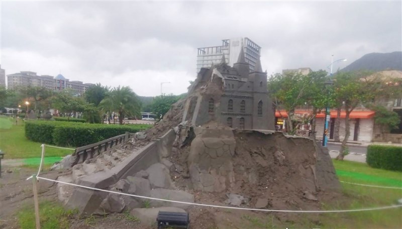 【本報新北訊】受尼莎颱風外圍環流導致豪雨影響,2022八里城市沙雕展的沙雕毀損嚴重,已達難以修復程度,新北市政府高灘地工程管理處表示,提前於今天結束展覽。