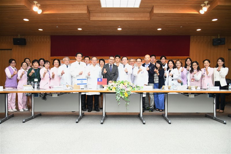 台大醫院於今年8月引進以色列原廠神波刀儀器。台大醫護團隊與以色列原廠代表及病友,於今日記者會上合影。圖/台大醫院提供
