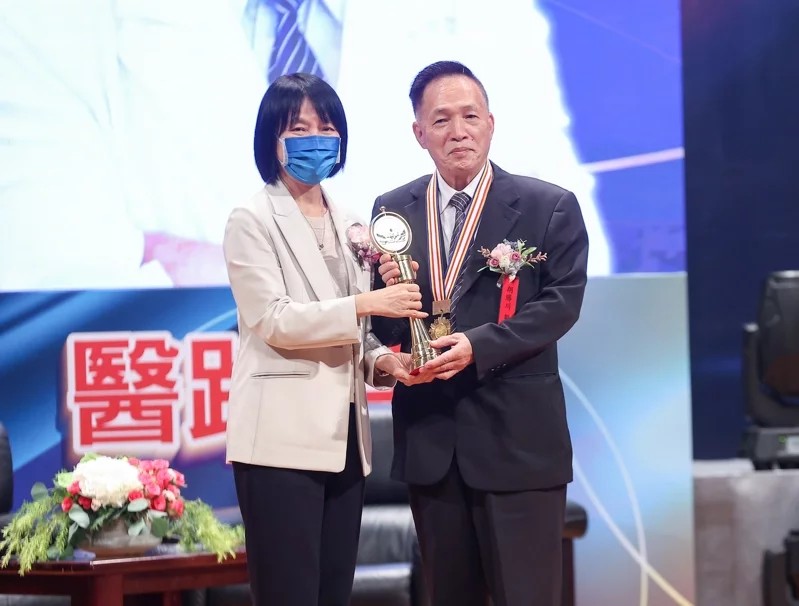 第32屆醫療奉獻獎頒獎典禮,聯合報社長游美月(左)頒發個人醫療奉獻獎,給花蓮慈濟醫院醫師胡勝川(右)。圖/余承翰攝影