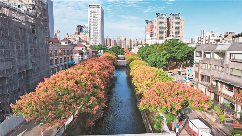 市府表示,台灣欒樹為無患子科落葉喬木,是台灣特有樹種,又名苦苓江、金苦楝、四色樹,秋天先開金黃色花序,結果期轉為紅色,蒴果乾枯時再轉為褐色,色彩十分豐富,目前府會園道、潮洋溪畔及各公園可見。