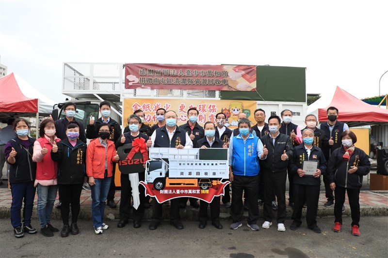 除獎勵表現優秀的學生外,萬和宮長期也發揮宗教慈善精神、熱心社會公益,像是今年廟方就捐贈資源回收車一輛,作為環保局清潔隊的金紙清運專車,這也是台中市第一間捐贈資源回收車的宮廟,為推動環保信仰貢獻心力。