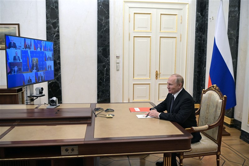 俄羅斯核武軍演,總統普亭以視訊方式遠距離監督。圖╱法新社