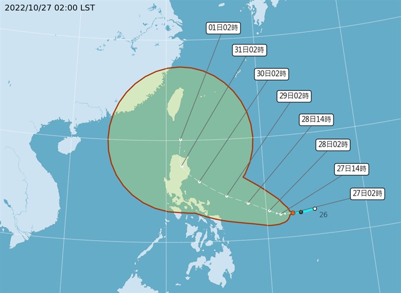氣象局表示,今年第22號颱風奈格最快27日形成,最接近台灣的時間點是10月30日至11月1日。圖/截自氣象局