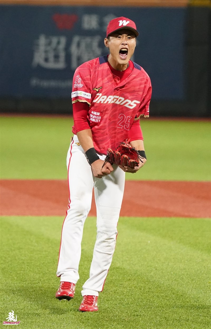 張政禹昨天演出關鍵守備後,自己興奮地大吼慶祝。圖/味全龍提供
