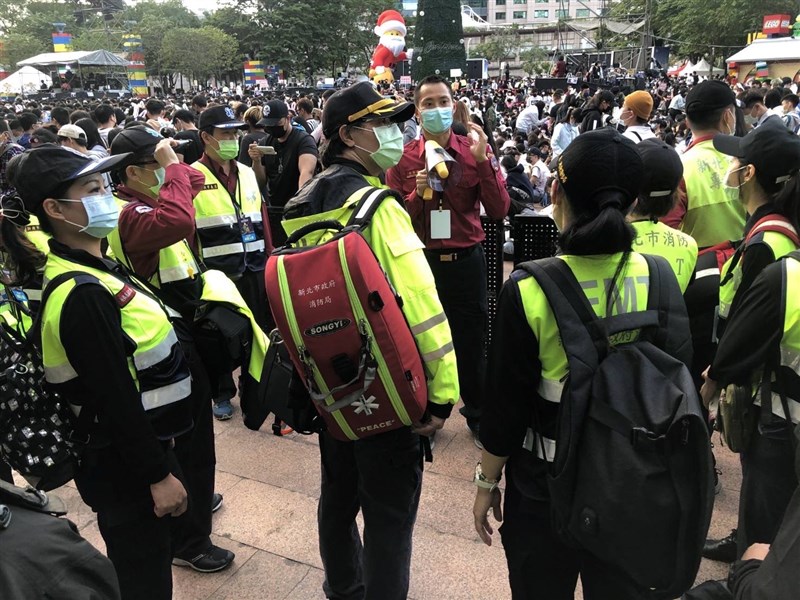 新北市府說,活動現場設有自衛消防編組,由消防局、工務局、警察局、衛生局、環保局、交通局等局處進駐現場緊急應變中心,各任務編組工作人員針對場地、器材設施、防火避難設施及消防安全設備在活動前詳細檢查,並在活動進行中機動巡檢,安排工作人員維護場內外人員安全、秩序維護,落實活動安全巡視和周邊交通疏導。