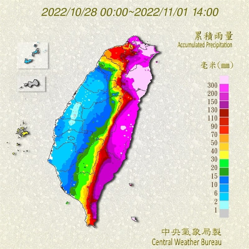 賈新興進一步說明,今年9月23、24日受颱風諾盧和微弱東北季風影響;10月6日至8日則是東北部異常降雨;10月15日至17日則是颱風尼莎和東北季風雙重影響;10月29日至31日為颱風奈格和東北季風雙重影響。