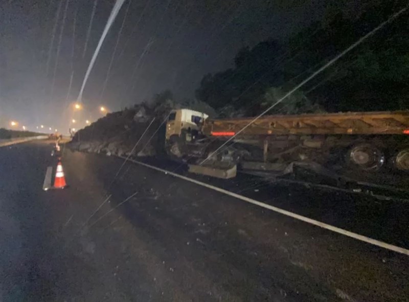 高速公路局北區養護工程分局副分局長張崇智描述,因土石含水量還是很高,約莫晚間7點左右,在搶修人員還沒來得及打樁的地方,土石又突然往下滑落,初步看來土石滑落區域還在昨天坍落範圍,但由於天暗、氣候也不佳,現場人員不敢貿然靠近確認,怕一動又有土石滑落。