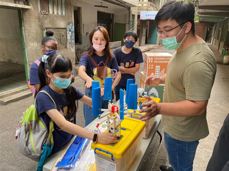 小朋友體驗風力發電活動。圖/大葉大學提供