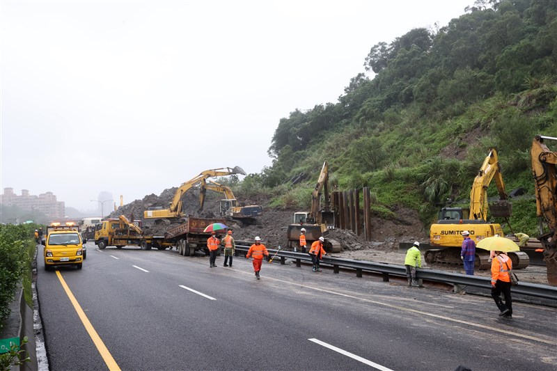 國道1號南向汐止交流道邊坡土石坍方,經高公局日夜趕工,今早6時搶通南下主線內側車道。圖/資料照片