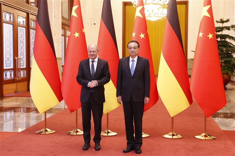 中國國務院總理李克強(右)和德國總理蕭茲,4日出席中德兩國總理聯合記者會。圖╱中新社
