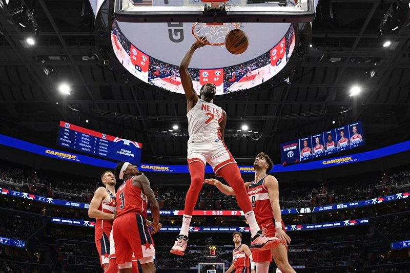 厄文遭籃網球團處分禁賽5場,開季表現不佳的西蒙斯(Ben Simmons)也沒有出賽,但球隊沒有受到太大影響,此戰面對巫師首節就拿到38分寫下本季單節新高。儘管次節巫師靠著庫茲瑪(Kyle Kuzma)和比爾(Bradley Beal)急起直追,但籃網半場結束前一波13:3攻勢,仍以69:57領先。