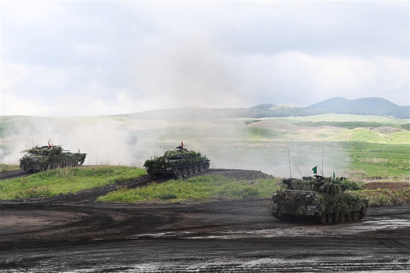 日本參與實彈演習的自衛隊戰車。圖╱資料照片