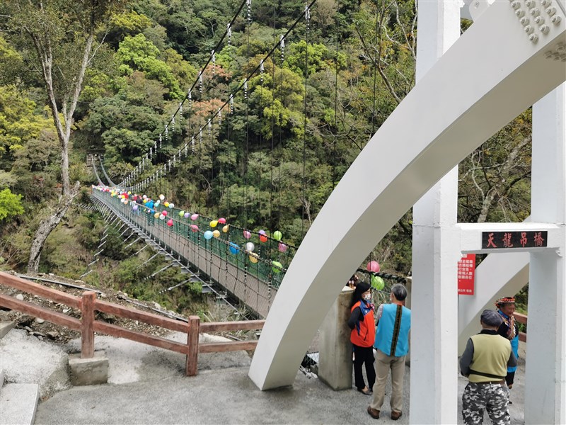 南橫天龍吊橋通橋迎觀光 北端天龍步道還要等 |2022.11.06 語音朗讀 1251觀看次 字級 大 中 小 天龍吊橋今天通橋,是跨越霧鹿峽谷最重要鐵線橋。圖╱卜敏正 【本報台東訊】台東縣海端鄉公所今天(6日)舉行天龍吊橋通橋典禮,這條橋不僅是許多人南橫重要記憶,也曾是莫拉克風災布農族生命救災之橋,從日據到民國歷經多次整修,承載地方歷史,但因天龍步道尚未通路,目前僅能來回觀光。天龍吊橋通橋典禮,地方部落以布農族八部合音歡慶,布農族巫師胡金娘也依傳統儀式祈福後,海端鄉長胡金至、花東縱谷國家風景區管理處處長郭振陵等人共同剪綵後,邀請地方族人共同走過長達110公尺天龍吊橋。天龍吊橋今天通橋,是跨越霧鹿峽谷最重要鐵線橋,也承載地方重要歷史。圖╱卜敏正天龍橋建於日昭和4年(1929年),位處東南橫山區交通要道、天龍飯店旁,2014年被鑑定危橋、封閉至今逾8年,海端鄉公所2018年除自編預算也向多單位申請經費,歷經3年整修、去年完工,但因連結天龍步道北端落石頻繁,經1年補強維護今天宣布通橋。天龍吊橋今天通橋,布農族巫師胡金娘帶著弟子走過吊橋。圖╱卜敏正胡金至說,天龍吊橋是跨越霧鹿峽谷最重要鐵線橋,這座橋承載地方重要歷史,無論經濟、觀光都極重要,1972年南橫公路通車後,天龍吊橋雖然不再是主要交通路線,2009莫拉克颱風侵襲、利稻橋斷裂、碧山溫泉至利稻隧道間路段崩塌,阻斷部落居民交通要道。當時天龍橋成為地方緊急救災、救援道路。天龍飯店「張姐」張紅雲表示,天龍吊橋8年前被鑑定是危橋封閉後,許多人來天龍飯店都問「你們怎麼把橋封起來了」,事實上大家都盼望橋早日開通,這座橋是許多南橫遊客重要記憶,開通後對地方觀光有很大助益。天龍吊橋今天通橋,部落族人們歡喜走過吊橋。圖╱卜敏正 前一篇文章 新海橋、大漢橋銑鋪 8至9日夜間封閉改道 下一篇文章 中橫關原段今提前搶通 3時段管制開放通行 熱門新聞 01【斗室有燈】老男冒險記2025.11.1402【詩】遊園地.競馬場2025.11.1703【經典新話】歸亞蕾 超越世代傳奇影后2025.11.1504渥太華佛光山 授海狸童軍領巾2025.11.1705【營養專欄】掌握五原則 輕鬆控糖2025.11.1506慢性發炎易罹癌、失智 葡萄、花椰菜修復細胞2025.11.1407【大師身影】 曲歌繞梁: 弘一大師李叔同(下) 2025.11.1408【海闊天空】濟州島旅記 解鎖美景美食2025.11.1509落葉刺繡 巴西百鳥寫真集2025.11.1710法華禪寺 彩繪燈籠2025.11.15 訂閱電子報 台北市 天氣預報 台灣一週天氣預報 相關報導 光電板泡水4個月 嘉縣府促業者清除竹崎牛稠溪改善排水 通過極端氣候考驗芬普尼毒蛋 另有1萬顆流入新北仙草嘉年華 浪漫粉紫花海台63線綠帶 獲國際景觀獎八里芒花添秋意