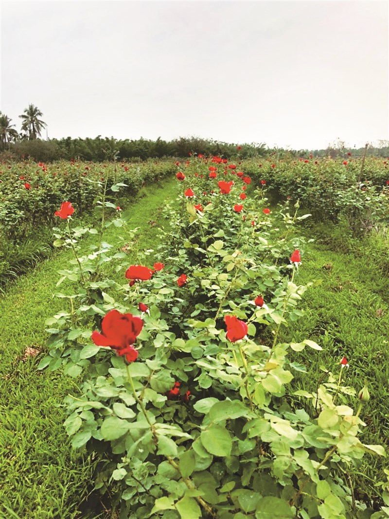 園區以栽種大紅玫瑰為主力,楊添得說,因為紅玫瑰有豐富的花青素及單寧酸、類黃酮、異黃酮、槲皮素等豐富的總酚,具有高營養價值。