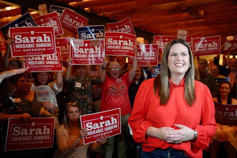【本報綜合外電報導】美國前總統川普時期的白宮女發言人桑德斯(Sarah Huckabee Sanders)在昨天期中選舉勝出,在共和黨票倉阿肯色州贏得州長一職,成為該州第一位女州長。
