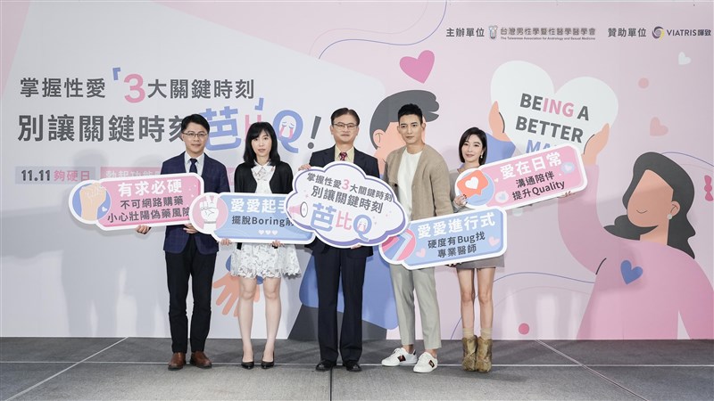 記者會邀請藝人許維恩與王家梁夫婦,擔任衛教大使,兩人去年登記結婚,明天即將補辦婚禮。這對默契良好的新婚燕爾,攜手兩性泌尿科醫師共同討論「性愛三大關鍵時刻」,宣導勃起功能障礙的正確認知,期能帶領全台男女享受健康性福、擁抱幸福人生。