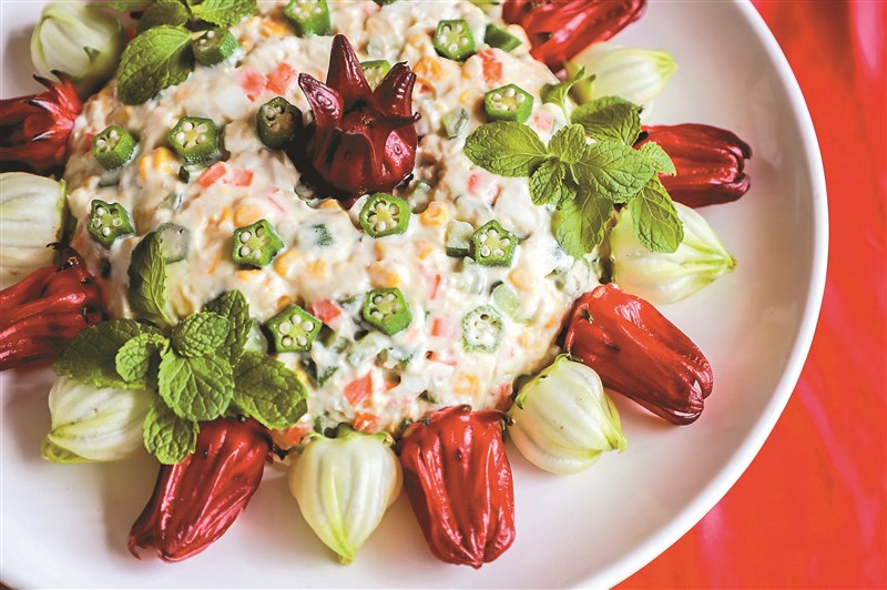鹿草家政班烹調的秋葵創意料理,令人食指大動。圖╱嘉義縣政府提供