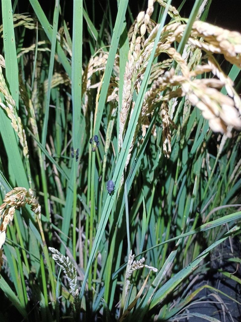 稻黑椿象為害使有機水稻產量大受影響。圖/台東農改場提供