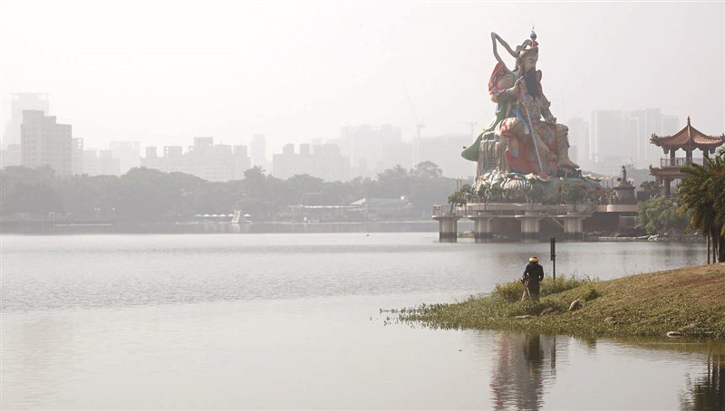 高雄市秋冬空汙問題嚴重。圖為高雄日前市區PM2.5濃度達到中度汙染等級,天空霧茫茫一片。