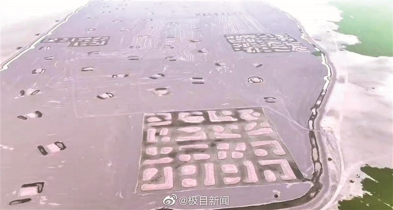 【本報綜合報導】洞庭湖水位持續低位,近日有網友在湖南省岳陽市華容縣團洲鄉的湖邊空拍,發現湖床上竟有一片暗紅色的大規模方形圖案,這塊目測長寬都有數百公尺的長方形區域位於洞庭湖湖心,之前一直淹沒在水底,因為目前水位低才得以曝光。影片傳出後引發討論,但沒有結論。