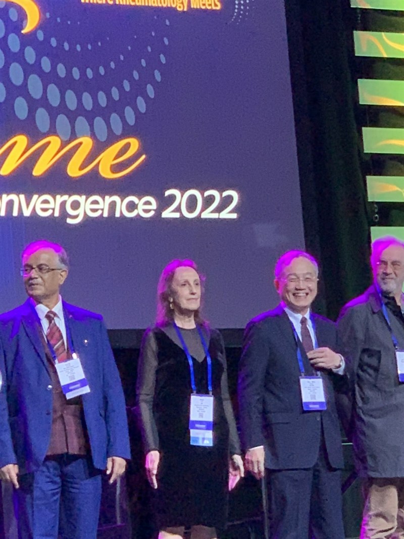 台北榮總院長陳威明表示,美國風溼學院迄今已89年,為風溼學國際最高學術殿堂,目前共有7700名正式會員,僅有529人獲頒美國風溼學院大師獎(Master of ACR)。
