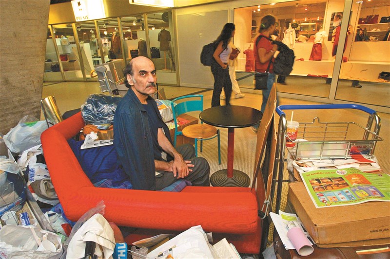 1945年出生的納賽里,1988年被伊朗驅逐出境,因身上沒有護照,淪為機場難民,自1988年至2006年一直住在戴高樂機場第一航站。機場一處木地板的小角落和塑膠椅,就是他的小天地。