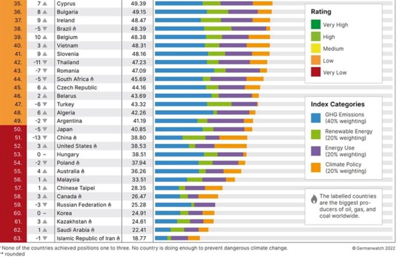 氣候績效評比 台灣進步一名但仍是後段班 |2022.11.14 語音朗讀 1502觀看次 字級 大 中 小 「德國看守」等非政府組織公布最新年度的「氣候變遷績效指標」(CCPI),台灣較去年微升一個名次來到第57名,但整體表現仍遭評為「非常低」。 圖/黃仲裕 【本報綜合報導】聯合國氣候變化綱要公約第27屆締約方大會(COP27)進入第二周,「德國看守」等非政府組織今(14)日公布最新年度的「氣候變遷績效指標」(CCPI),台灣較去年微升一個名次來到第57名,但整體表現仍遭評為「非常低」,排名倒數第7;丹麥、瑞典與智利排名前3名,而中美兩大碳排放國分居51和52名,表現都是「非常低」。該指標共評比全球59國加上歐盟,其中台灣在「氣候政策」項目表現為「低」,而在「溫室氣體排放」、「能源使用」和「再生能源」3項目皆獲「非常低」表現。負責評比的「德國看守」專家指出,台灣雖公布2050年淨零路徑,但尚未提出2030年中期減碳目標,也缺乏實現目標的具體行動計畫。圖/德國看守報告該評比指出,台灣持續依賴化石燃料產生能源,再生能源占比偏低,並批評台灣缺乏具體的石油與天然氣「逐步淘汰」計畫(phase-out)。「德國看守」專家希望,台灣的再生能源發展要更有企圖心,同時不應破壞生態環境,例如藻礁、森林與溼地等。前來埃及參加峰會的「國際氣候發展智庫」執行長趙恭岳表示,再生能源比例的提升是基本能源結構的大改變,台灣因為過去法規及系統並非以再生能源為主設計,當然需要時間調整,「歐洲走了10幾年才到現在狀態,目前台灣光電已比開始推動時翻了數倍,風電也持續上路運轉,未來應該會逐漸加速」。 圖/曾學仁對於專家批評台灣欠缺2030年中期目標,趙恭岳認為,每個國家的路徑圖及2030減量目標都不同,應該依照各自發展特性來訂定,「像馬拉松配速,台灣應依照能源結構和產業特性來進行設定,因應國際要求,並在六大部門規畫不同的路徑圖,在能源效率上提升,才能接軌國際」。台北大學自然資源與環境管理研究所教授李堅明表示,台灣雖然在氣候變遷的努力有進展,包括綠電、節能及法制等面向,但CCPI成績屬末段班,顯示別的國家進步比台灣快,這是排名落後原因;依照「Race to zero」標準,2030年應訂定減排40至50%目標,才符合國家自定貢獻(NDC)的雄心標準。「德國看守」去年公布數據時遭到台灣官方指正,將我國人口數與溫室氣體排放計算錯誤,環保署長張子敬更說考慮往後不再參加評比。 前一篇文章 台版《禹英禑》 鍾華瑄獲身心障礙楷模金鷹獎 下一篇文章 北市第2場市長政見發表會15日登場 每人30分鐘 熱門新聞 01全中運張雅佳游泳 3 金 雙破全國2026.04.2402【詩】 鐮刀俠2026.04.2103佛光山開山60周年 傳授三壇大戒2026.04.2004人情冷暖與計算 悅讀〈 杜十娘怒沉百寶箱 〉2026.04.2105【走讀城鄉】淡水市街清代三合院─施家古厝2026.04.24062026地球日 行動永續綠色未來 2026.04.2207永和學舍慶佛誕 千人浴佛清淨身心2026.04.2208嘉義.朴子 樸城煙霞古韻長 水道遺風話滄桑2026.04.2009火金姑復育有成 螢光爆發2026.04.2110衣服晾乾變硬 微觀祕密 2026.04.22 訂閱電子報 台北市 天氣預報 台灣一週天氣預報 相關報導 林佳龍任總統特使 抵史瓦帝尼看電影、聽演唱會 免課娛樂稅美太空人林琪兒 重返兒時舊居地第18屆兩湖論壇 南投登場總統訪史瓦帝尼 臨時喊卡陸惠台措施 商總:利民就該開放