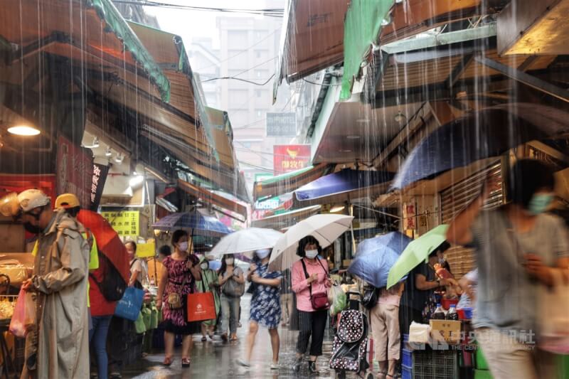 中央氣象局表示,15、16日桃園以北、東半部、恆春半島、馬祖會有局部短暫雨,東北部留意大雨。圖為民眾撐傘到台北市中正區東門市場採買。圖/中央社