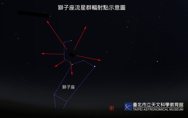 獅子座流星群輻射點示意圖。圖/臺北天文館提供