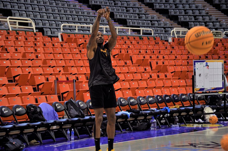 霍華德今天在國體大體育館進行賽前最後一次練球。圖/記者張哲郢