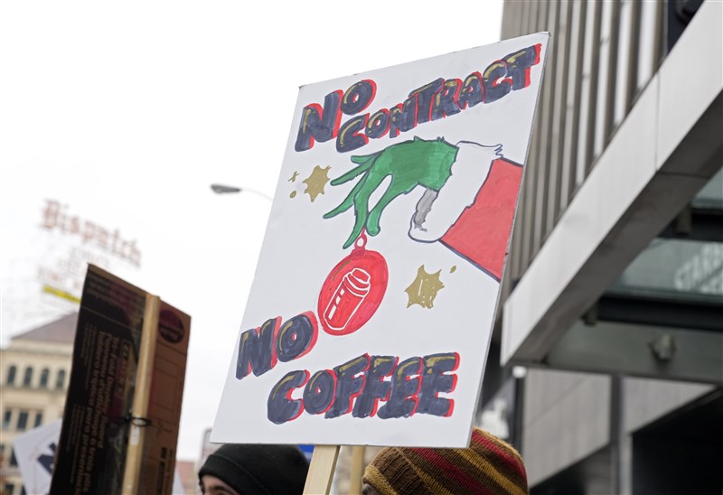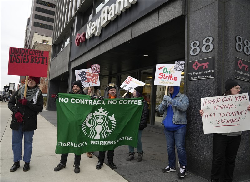 美星巴克大規模罷工 260間門市上演紅杯起義 |2022.11.18 語音朗讀 1023觀看次 字級 大 中 小 星巴克工會發動一日罷工,被稱為「紅杯起義」。圖╱美聯社 【本報綜合外電報導】連鎖咖啡業者星巴克(Starbucks)美國員工17日在多個已加入工會的地點展開罷工,打算影響超過100間門市,抗議公司在協商工會契約方面的作法。這場由星巴克工會(Starbucks Workers United)帶頭的一日罷工行動被稱為「紅杯起義」(Red Cup Rebellion),恰逢星巴克推出熱門活動,顧客購買特定商品可獲發能重複使用的杯子,不過員工發的不是星巴克品牌杯,而是紅色的工會杯子。星巴克推出活動,購買特定商品能獲環保杯。圖╱美聯社星巴克員工冒著寒冷在紐約時報廣場(Times Square)附近抗議,高呼口號和並手持星巴克工會標語,星巴克工會代表全美各地近7000名員工。18歲員工托沙(Jay Tosa)說:「這是一件值得爭取的事情。」星巴克工會聲明表示,這起行動是「回應星巴克打擊工會的策略和拒絕協商的態度」,還說員工想要有不受恐嚇威脅的組織工會的權利。星巴克工會對薪資和缺乏一致時間表表達關切,「除非星巴克坐上談判桌,抱持善意協商一份公平的契約,否則我們可以預料此事(罷工抗議)會再度上演」。另一名紐約員工巴切斯(Hal Battjes)說:「在早晨尖峰時刻,我們獲得常客大力支持。」星巴克工會發動一日罷工,被稱為「紅杯起義」。圖╱美聯社星巴克工會如今代表逾260個地點,是星巴克在北美管理約1萬200間門市的一小部分。星巴克管理階層被指控恐嚇,且遲遲未展開集體協議的談判工作。根據星巴克工會說法,全國勞工關係局(National Labor Relations Board)已對星巴克提出數十起申訴。除星巴克外,有愈來愈多的公司也開始發起工會運動,包括蘋果公司(Apple)、零售及戶外休閒服務公司REI、奇波雷墨西哥燒烤公司(Chipotle Mexican Grill Inc.)和喬氏連鎖超市(Trader Joe's)。星巴克工會發動一日罷工,被稱為「紅杯起義」。圖╱美聯社 前一篇文章 加薩走廊難民營大火 釀21死、含10孩童 下一篇文章 FTX破產案 未來可能發展看這裡 熱門新聞 01全中運張雅佳游泳 3 金 雙破全國2026.04.2402【走讀城鄉】淡水市街清代三合院─施家古厝2026.04.2403久坐看電視易失智 閱讀談話活化大腦2026.04.2804台南.佳里 蕭壠香火溯根源 紅磚古厝映流年2026.04.2705【詩】諸羅山社2026.04.2406【人間行者心】日常即是佛法2026.04.2607台灣佛教總會理事長交接 佛光山祝賀2026.04.2708【看人間】縮小自己 是與朋友相處的祕訣2026.04.2809新加坡佛光山 硬筆字賽千人揮毫2026.04.2410好萊塢剩食 化弱勢救命餐2026.04.26 訂閱電子報 台北市 天氣預報 台灣一週天氣預報 相關報導 英王演說談環保、講法治 微妙反駁川普送子鳥築巢紫花海之約印尼火車相撞 14死84傷英王訪白宮會川普 修補英美關係無人機燈光秀