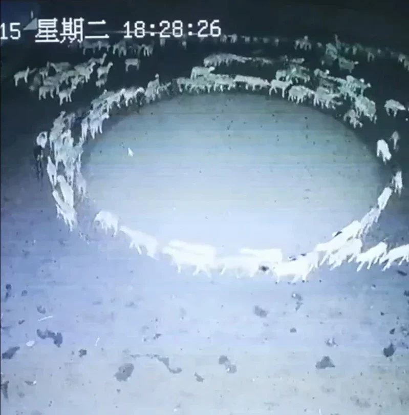 《人民日報》於推特上發布一段影片,位在內蒙古的牧場監視器拍下一大群羊圍成圓圈,並在原地不斷打轉,就這樣繞著前一隻羊走已長達10多天。