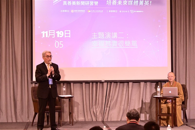 與病為友 依空法師:幸福其實很簡單 陳玲芳 |2022.11.19 語音朗讀 1258觀看次 字級 大 中 小 依空法師從佛教經典角度闡釋「無畏」,並用自身「與病為友」的歷程,來體現「幸福其實很簡單」的道理。圖/人間社記者周倫 【記者陳玲芳台北報導】「真善美新聞研習營」19日下午舉行主題演講,邀請佛光山文化院院長依空法師以「幸福其實很簡單」為題,分享自身感想。依空法師從佛教經典角度闡釋「無畏」,並用自身「與病為友」的歷程,來體現「幸福其實很簡單」的道理,幽默風趣、善用譬喻的講述,讓青年學子都能從深入淺出的演講中,獲取佛法智慧。依空法師說,星雲大師選在公元2000年4月1日愚人節辦報,讓文學博士出身的他不小心成為半個新聞人。曾任《人間福報》社長的依空法師指出,即便只是一份「小報」,但福報22來不曾中斷過一天,且內容是真正的老少皆宜,父母親可以放心地與孩子們一起閱讀,絲毫不覺得汗顏。依空法師引經據典說,《華嚴經‧十地品》中歡喜地菩薩可離「五怖畏」:不活畏、惡名畏、死畏、墮惡道畏、大眾威德畏;成佛之後,則有正等覺、漏永盡、說障法、說出道等「四無畏」。19日下午由世新大學副校長楊盛昱(左)主持的主題演講「幸福其實很簡單」,主講人為佛光山文化院院長依空法師。圖/人間社記者周倫而依空法師個人所體悟的「無畏」,則從921大地震時說起,當年他被星雲大師任命為救災總幹事,在餘震不斷、山路肝腸寸斷的狀態下,仍能無所畏懼、指揮若定,就是因為救苦救難的慈悲心。觀世音菩薩千手千眼,千處祈求千處應,以及地藏王菩薩「地獄不空,誓不成佛」的勇氣,便是依空法師勇往直前的最大力量;他藉此勉勵新聞學子,報導事件「真相」固然要有勇氣,但也不能喪失人性最可貴的溫暖與慈悲心。佛曾以手中的沙與大地之土為喻,比喻「人身難得」如佛手中之沙,而三途惡業的眾生,則多如大地之土;依空法師說:「正因為人身難得,我們更要努力經營生命,創造善因善緣,如此就有無畏、幸福的未來。」依空法師(左四)演講前,與前一場論壇的主持人沈春華(右四)及多位來賓合影。圖/人間社記者周倫依空法師過去曾於6年期間3度罹癌,並從生命中深深體悟佛法;他用法語勉勵青年學子:「身苦,心不苦;身病,心不病」。如今依空法師更以「現在沒有人看得出我是病人」為豪,因為自認生命如活水,源源不絕,好比南宋朱熹的感悟詩,「半畝方塘一鑑開,天光雲影共徘徊,問渠哪得清如許,為有源頭活水來」,與病為友,反而讓他更有動力做更多事。 前一篇文章 T1/比魔獸特有種的男人 阿巴西半場猛洗33分 下一篇文章 團團個性憨厚 在台近15年惹人愛 熱門新聞 01【印象旅人】阿里山森鐵首航記2026.04.1102人口持續減少 今年新生兒恐跌破9萬 2026.04.1103螢光花泉季 卡比胖拉超療癒2026.04.1104鄭習會 鄭:兩岸和平制度化2026.04.1105【口腔健康攸關長壽】 張添皓:從齒啟動全身保健2026.04.1106【養眼專欄】 糖尿病為何讓視力忽近忽遠?2026.04.1107洗衣機新過濾系統 捕捉9成微塑膠2026.04.1108MLB太空人打敗洛磯 鄧愷威中繼成功2026.04.1609佛光大佛供奉法華塔與《法華經》信仰意涵2026.04.1210紐約曼哈頓 豆梨花盛開2026.04.11 訂閱電子報 台北市 天氣預報 台灣一週天氣預報 相關報導 跨域載具AI智慧安全系統 亮相3展聯合開幕 聚焦電動、氫能車賴總統4月22日出訪史瓦帝尼大型建案強制裝光電 藍提案喊卡鄭:若執政 恢復兩岸故宮交流海軍新造浮塢下水 後勤能量提升 作者其他文章【口腔健康攸關長壽】 張添皓:從齒啟動全身保健守護孩子聲命 純音聽力檢查是關鍵清明養生疏肝解鬱 玫瑰花茶調肝降火6神穴舒筋止痛 中醫養生兼抗老助眠把握遠視儲備期 防兒童近視惡化齒列矯正冒黑縫 黑三角真相