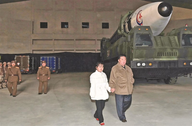 【本報綜合外電報導】北韓18日又試射一枚洲際彈道飛彈(ICBM),領導人金正恩親自到場視察,不僅帶著妻子李雪主,還讓女兒首度公開露面。